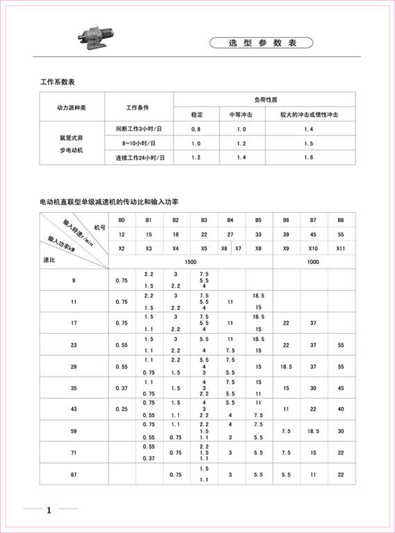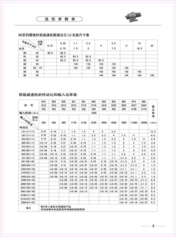 B、X系列擺線針輪減速機(jī)選型參數(shù)表