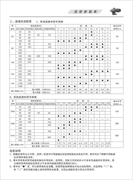 減速機(jī)選型條件參考
