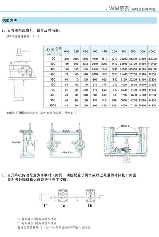 JWM絲桿升降機當有橫向載荷時及配置為串聯時注意事項