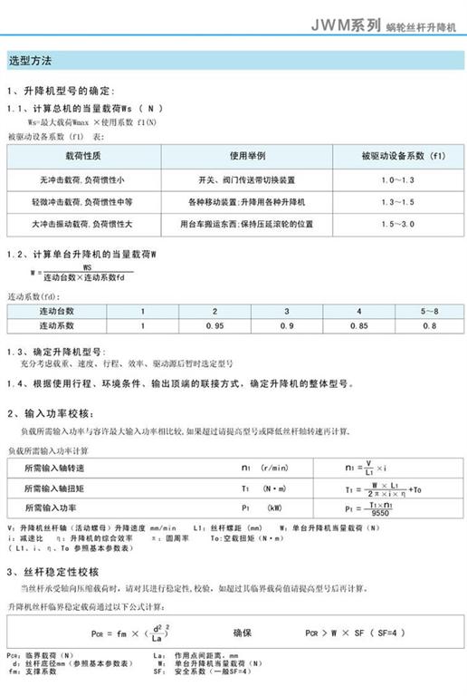 JWM升降機型號的確定與輸入功率、絲桿穩定性、臨界轉速的校核