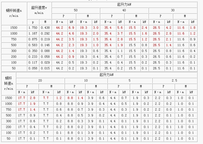 蝸桿扭矩N·m