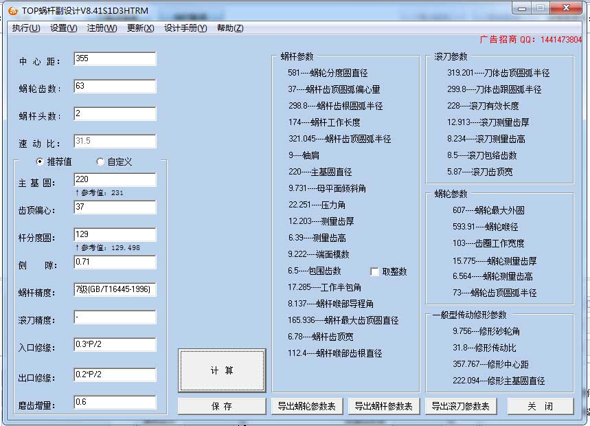 程序提供了一些常規(guī)計算參數(shù)的推薦值作為蝸輪蝸桿參數(shù)的參考,用戶也可根據(jù)實際加工要求及生產經驗自行修改各個參數(shù)及計算法則,靈活掌握此軟件的應用。對于新接觸此類蝸桿傳動的用戶來說,可先查看平面二次包絡環(huán)面蝸桿傳動的基本原理或者查看相關機械手冊,新版本逐漸完善對新用戶的使用幫助。