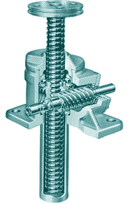 是由蝸輪減速機和升降絲桿組成,其減速部件是蝸桿傳動,利用蝸桿帶動蝸輪實現減速。蝸輪中心是內螺紋結構,相當于升降絲桿的螺母,和升降絲桿相匹配。